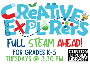 Creative Explorers. Youth Dept. Tuesdays, 3:30 p.m.